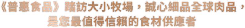 我們不只為了品質不畏困難的走訪全球大小農牧場!我們更擁有著強大的貿易團隊提供您最專業的國際肉品價格走勢的分析讓您不必再畏懼市場的起伏不定!而我們的專業與35年來對品質的堅持,更使我們成為國際肉品大廠指定的代理商。